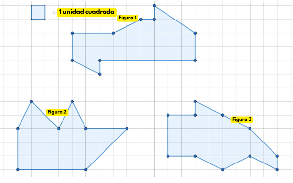 Si cada cuadro es 1 unidad cuadrada, ¿qué figura cuenta con una superficie de 24.5 unidades cuadradas?
