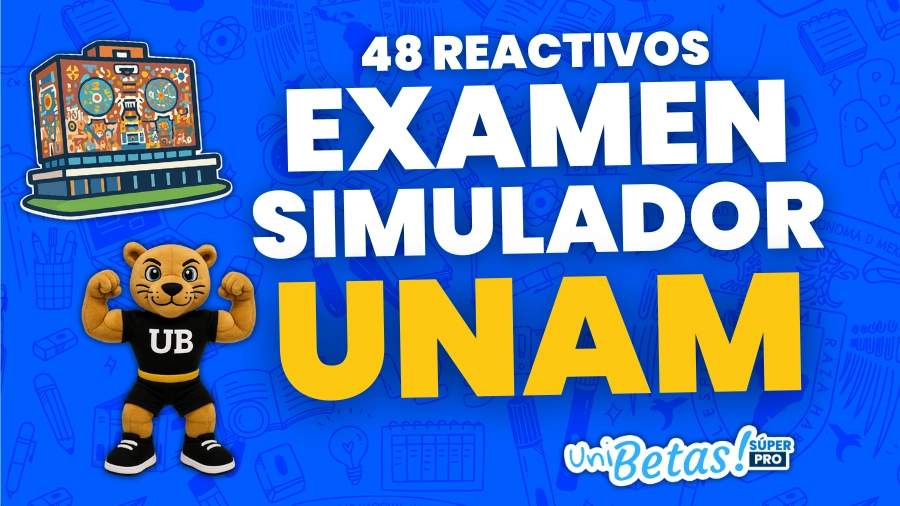 Hola, aspirante UNAM. Hoy te traemos un simulacro completo con 48 ejercicios, diseñados para que puedas repasar todas las materias del examen de admisión.