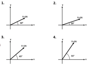 Ordenar, de mayor a menor, la componente horizontal de los siguientes sistemas de fuerza.