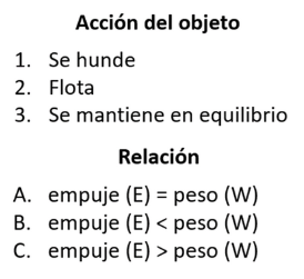 Asociar la acción de un objeto que se encuentra en un recipiente con agua con la relación entre el peso de dicho objeto y el empuje del agua.