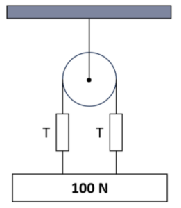 Calcular el valor de los dinamómetros que se muestran en la imagen para que el sistema se encuentre en equilibrio.