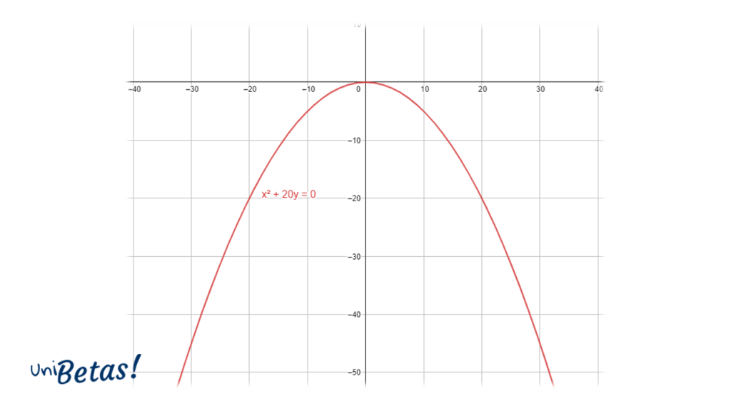 Teniendo en cuenta que el vértice está situado en el origen, y que el punto por el que pasa la parábola está por debajo del vértice, concluimos que la parábola abre hacia abajo. El signo del parámetro 4p debe ser negativo.